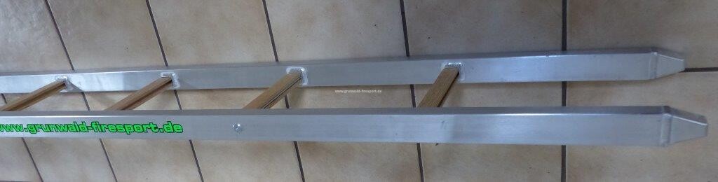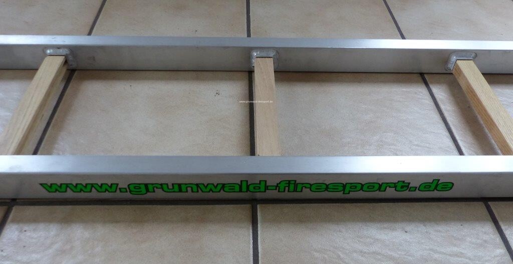 - Sprossenaufteilung und Einstiegshöhen nach modernsten feuerwehrsportlichen Erkenntnissen für noch schnelleres und flüssigeres Erklimmen des Hauses